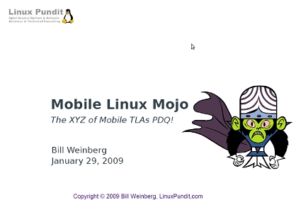 - Bill Weinberg, independent analyst and consultant at LinuxPundit.com discussed: “An Alphabet Soup of Mobile/Embedded Linux Consortia”