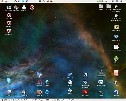 [Reply from DeviceGuru: Yes, before doing the clean install I tried a dist-upgrade of the Black Tower’s original Kubuntu 8.04 install to Kubuntu 8.10, and it substituted KDE 4.1.x for KDE 3.5.x. I’ve written about my experiences with KDE 4.1 before — it has lots of fancy GUI effects, but for my tastes it’s basically all frills and no substance.]