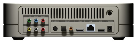 The Myka STB is compact and uses minimal power, according to the company. It’s based on a Broadcom BCM7403 system-on-chip processor and generates HD video at resolutions up to 1080p. As the photo below shows, the device offers a rich variety of A/V connection options.